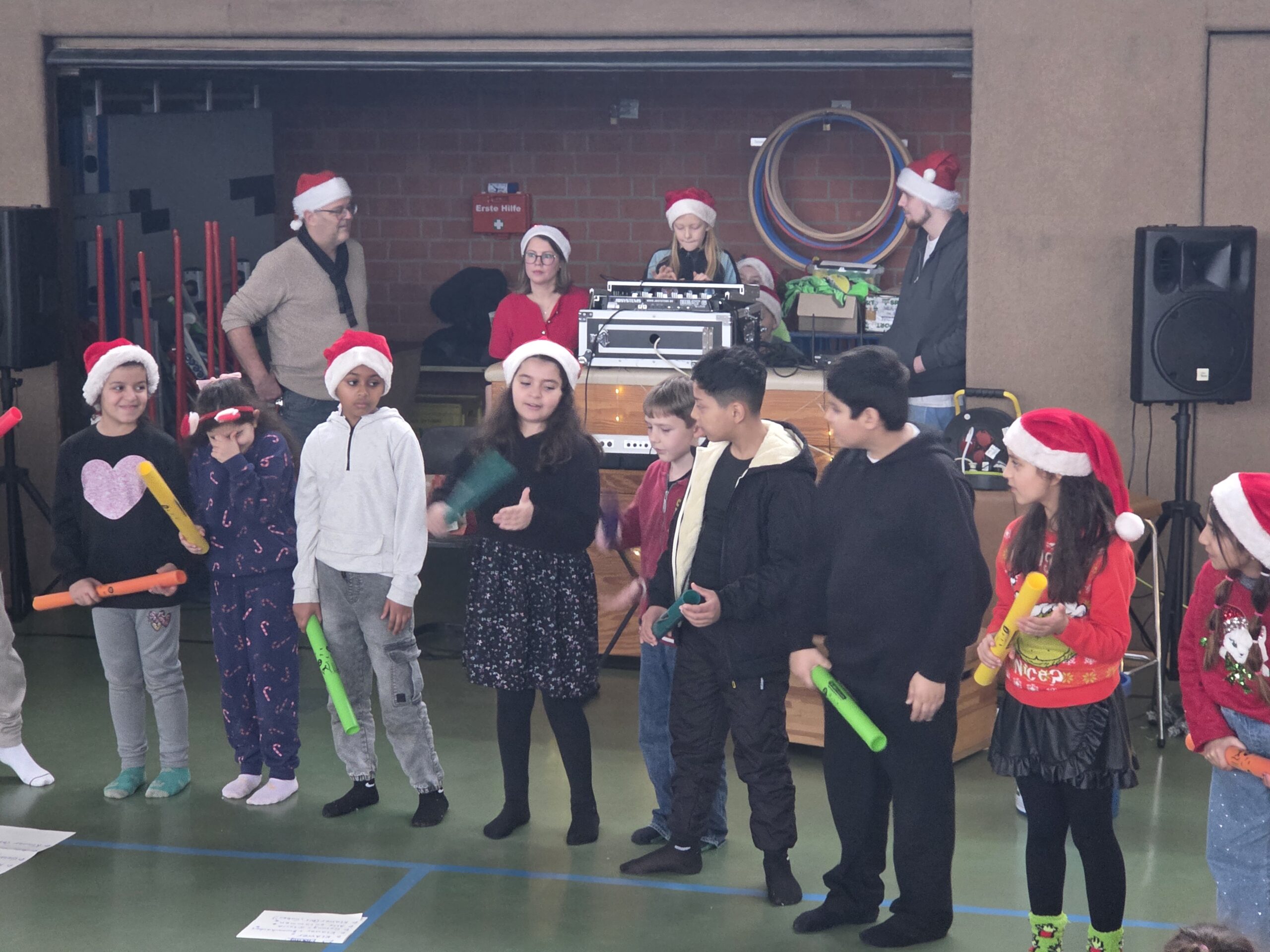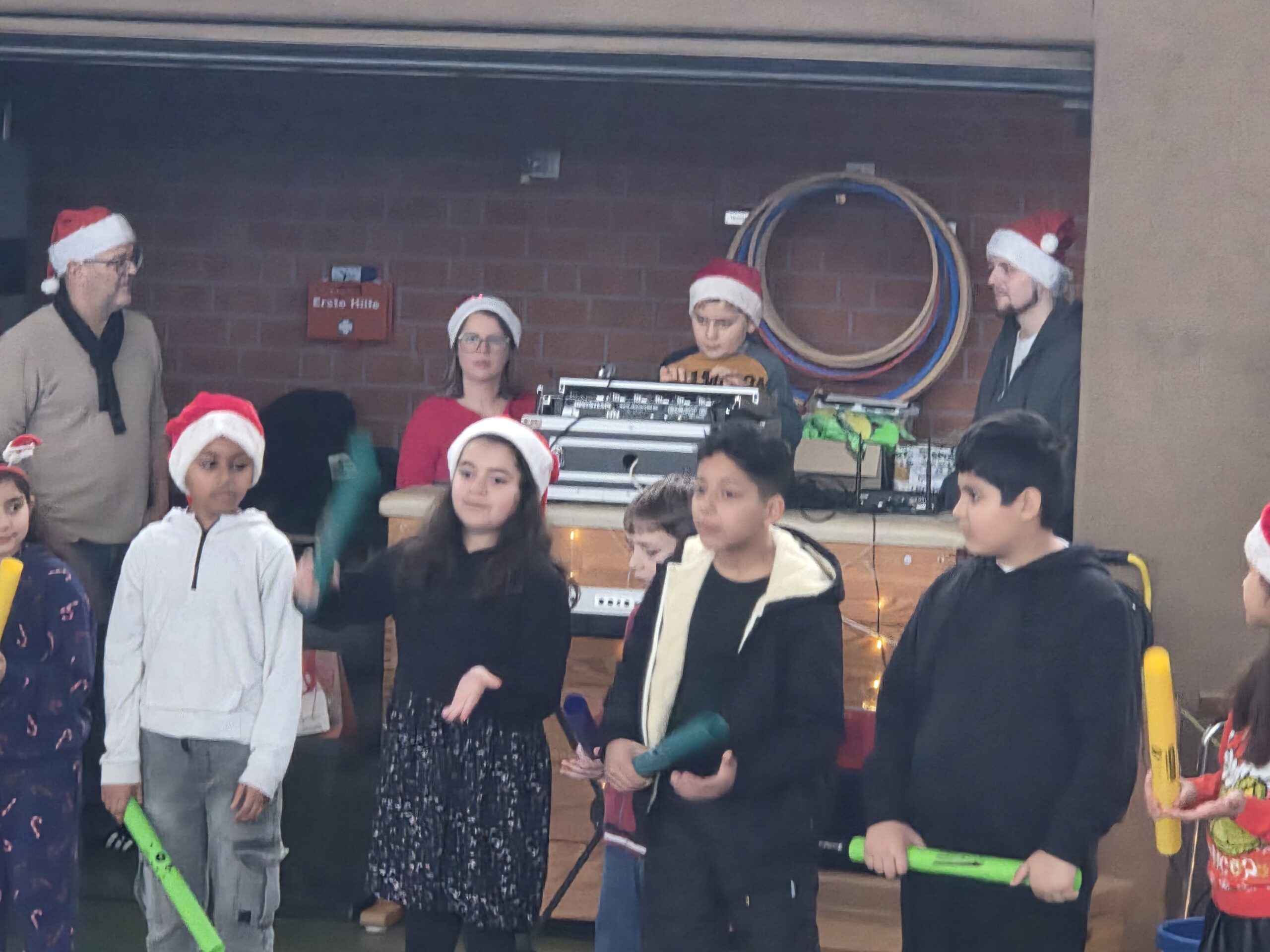Nach dem Christmas Song der 3. Klassen wurde den Kindern präsentiert, was dank der Hilfe des Fördervereins für alle angeschafft wurde. Außerdem gab es Geschenke für jede einzelne Klasse.