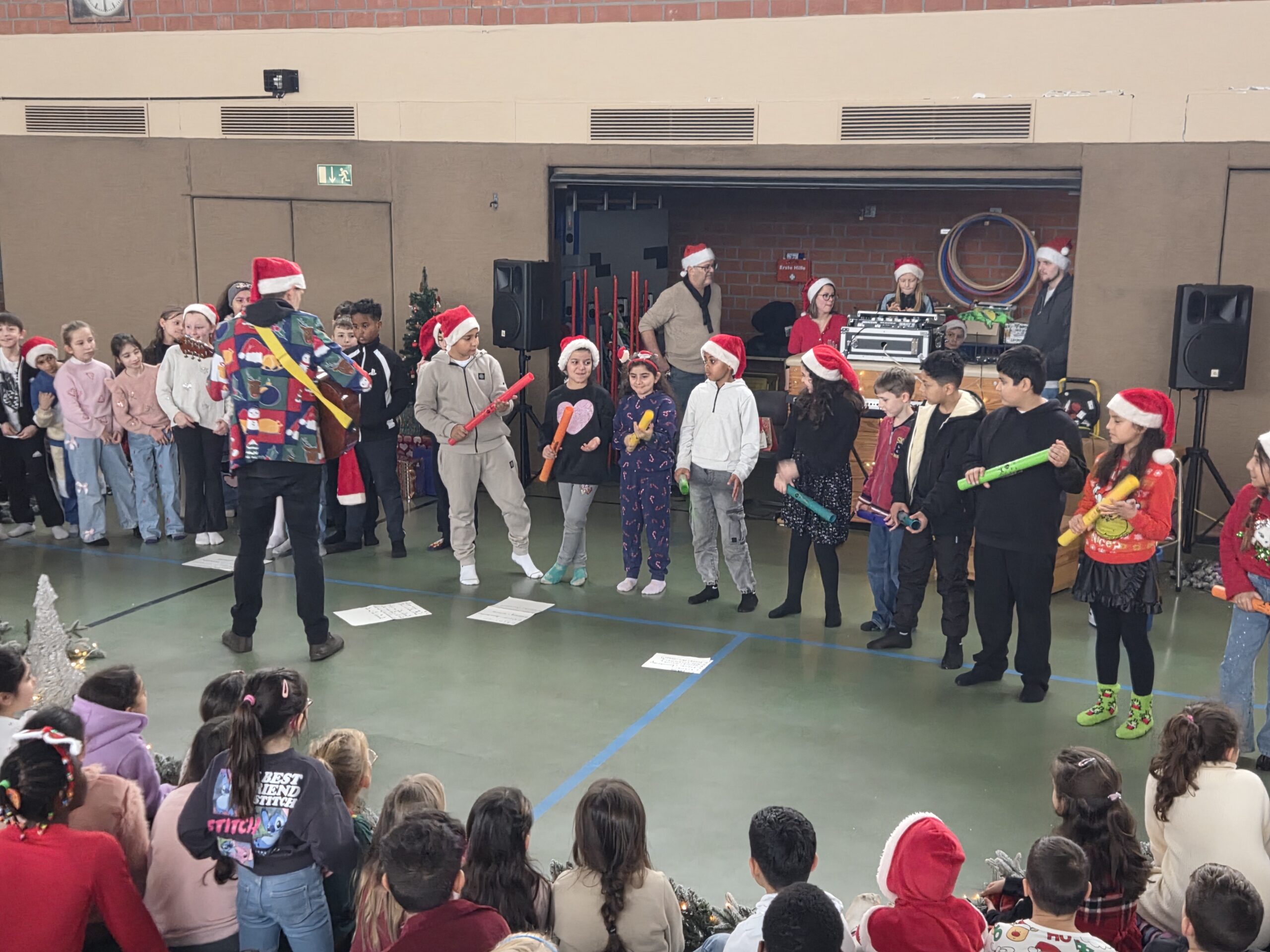 Eine Weihnachtsfeier mit mehr als 300 Kindern und Mitarbeitern – gut, dass wir eine eigene Sporthalle haben.
